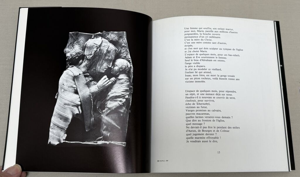 Livre par Claude Mollart, Bruno Foucart & Marcelin Pleynet. Collection " l'éclat des lieux ", éditions " la différence " et Maison de la Culture de LA ROCHELLE. Très beau document de 53 pages, CATALOGUE de L'EXPOSITION JEANCLOS 1986 à La Rochelle. Beaux textes & belles photos prises suite à la rénovation du PORTAIL MEDIEVAL de SAINT AYOUL, martelé à la Révolution, et à sa rénovation à l'aide des bronzes contemporains du sculpteur JEANCLOS. 24 x 21 cm.