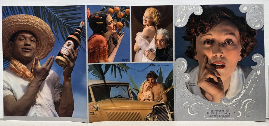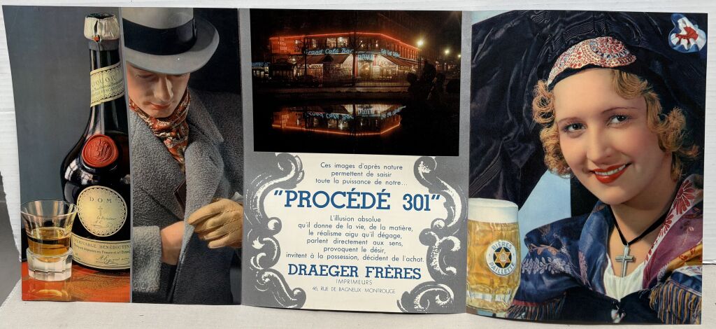 Des photos imprimées d'exception pour montrer leur réalisation des luxueuses marques de luxe pour lesquelles l'imprimerie réalise la publicité : Bénédictine, bières Paillette, Rhum Négrita, Ford, Picon, cachets Kalmine .Procédé unique de restitution des couleurs.