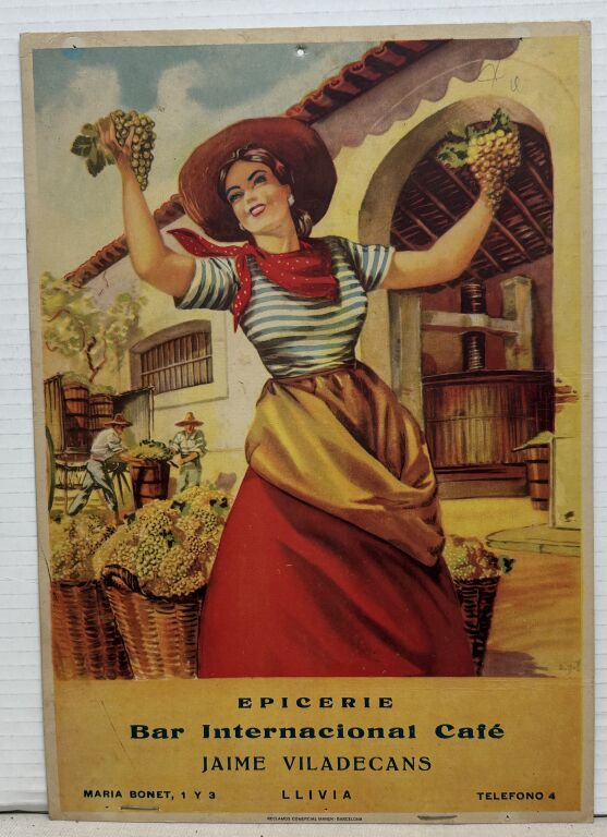 PUBLICITE VINS carton - calendrier à suspendre " EPICERIE BAR INTERNATIONAL CAFE, JAIME VILADECANS rue Maria Bonet à LLIVIA - Espagne. - 34 x 24 cm,