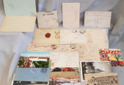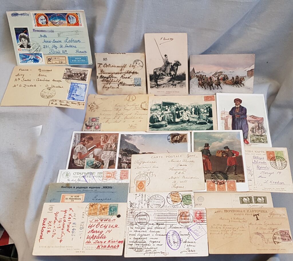 18 belles correspondances anciennes voyagées, lettres et cartes postales, affranchissements composés et seuls sur lettre + 2 cartes postales 1904/10 non voyagées.