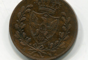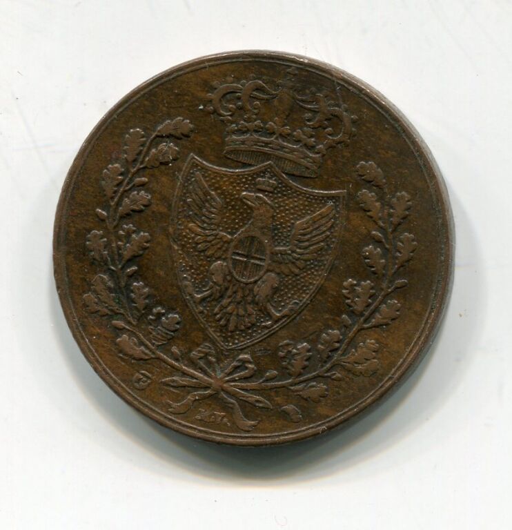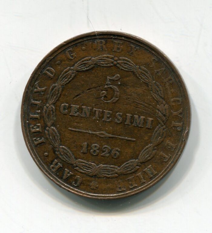 SARDAIGNE - 5 centimes de cuivre du roi Charles Felix - Blason couronné / titulature, valeur nominale, millésime 1826 P, différent tête d'aigle (atelier de Turin) - 9,62 g. - TTB