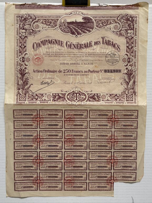 SCRIPOPHILIE - " COMPAGNIE GENERALE des TABACS " ( * ).