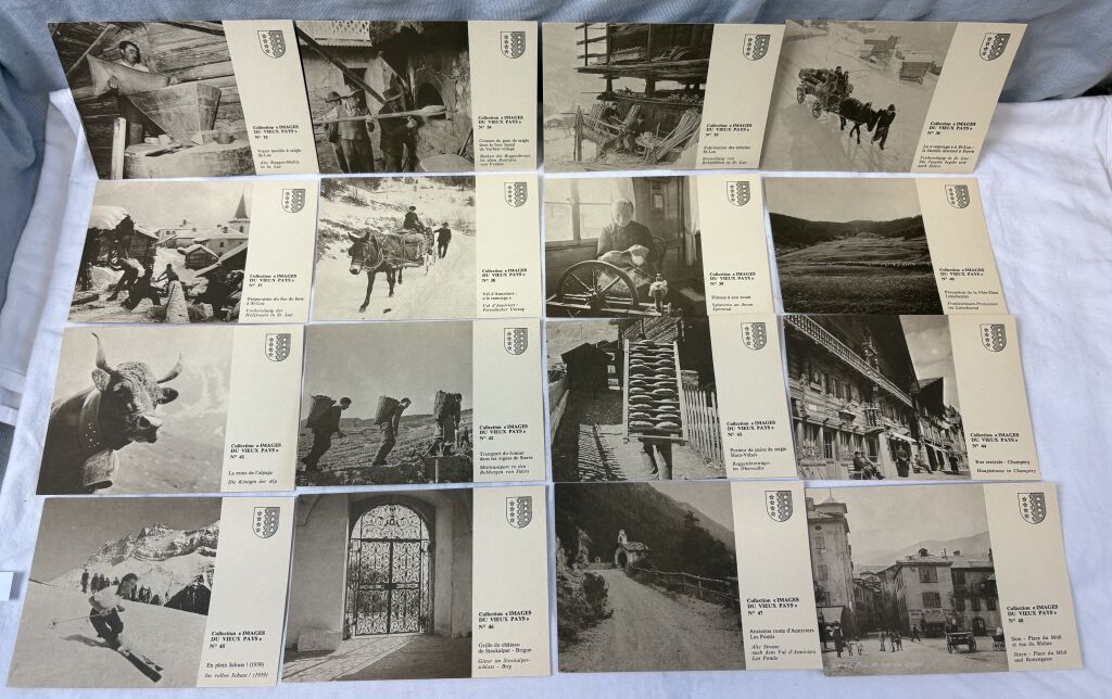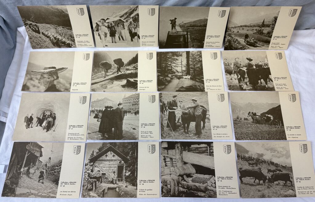 SUISSE - collection " IMAGES du VIEUX PAYS ", édition du Musée des costumes valaisans. Série complète de 48 (quarante huit) cartes postales sur la vie quotidienne, les gens, les métiers des années 30 à 40. Remarquables témoignages et reflets d'une époque pas si lointaine mais tellement différente d'aujourd'hui.