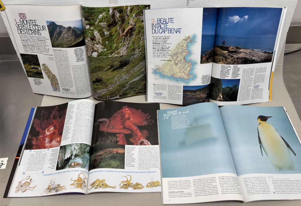 Amazonie, Indonésie expédition Calao, ouest américain le retour des grands loups, pour ou contre les plantes transgéniques, Pôle Nord Pôle Sud les voyages extraordinaires de Jean Louis Etienne, Mexique plongez dans les jardins aquatiques du désert, visite guidée dans cité des fourmis, avalanches terreur blanche, Himalaya facteur à pied, Japon face a face avec le Fuji, Ile d'Yeu, Noirmoutier, le marais breton, aux confins de la Chine, Grand nord canadien & chercheurs d'or, dossier pavot la fleur du mal, il pleut sur le Serengeti, Théodore Monod j'ai donné ma vie au désert, oiseau Condor, les indiens d'Amérique parlent de leur terre, ratons laveurs, Sicile, iles Kiribati, rencontre avec le jaguar en Guyane, de la Méditerranée à l'Atlantique rencontre avec le phoque moine, été dans le Tibet en fleurs, Plongée à Palau, Insectes de Nouvelle Guinée, vue du ciel le grand spectacle de la Terre, de Tahiti à l'Australie le 1er naturaliste, en automne dans les forêts d'Alaska, Bangladesh face à la folie des eaux, Dauphins, Orques & baleines, Groenland, vie de Cow Boy dans l'ouest américain, Madagascar, Namibie, approche de l'ours au Canada, Ecosse route des fantômes, Floride face à face avec le Lamentin....