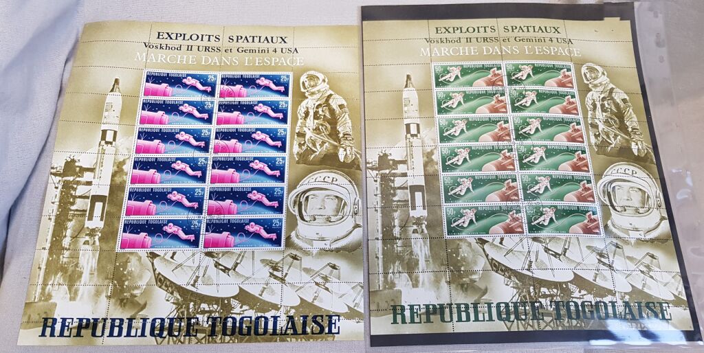2 feuillets, un pour Voskod II de l' U.R.S.S. Et Gemini 4 des Etats Unis.
