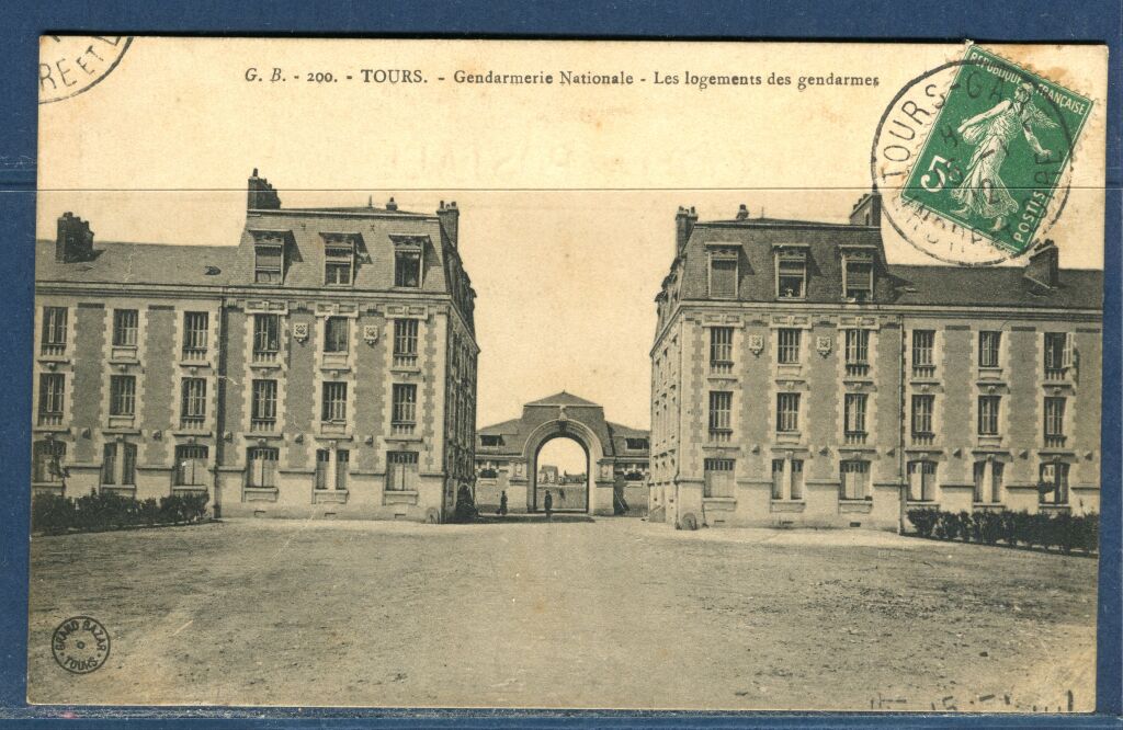 TOURS (37) - GENDARMERIE NATIONALE, les logements des gendarmes. Carte postale 1910 peu courante. Vue intérieure de la nouvelle gendarmerie construite avenue de Grammont - beau plan général GB 200