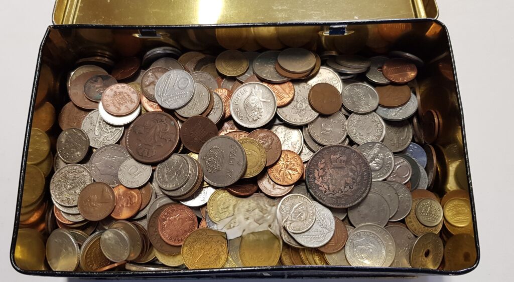 Vieille boîte fer - VRAC à TRIER MONNAIES du MONDE.