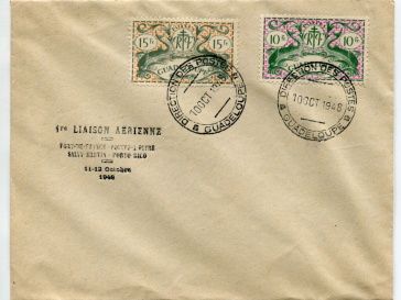 POLYNESIE - NOUVELLE CALEDONIE - PREMIERE LIAISON AERIENNE de la Compagnie TRAPAS ( transports aériens Pacific Sud ) PAPEETE à TAHITI via Nandi - Aitutaki - Rarotonga. Affranchissement timbres d' Océanie Française de la série France Libre, cache