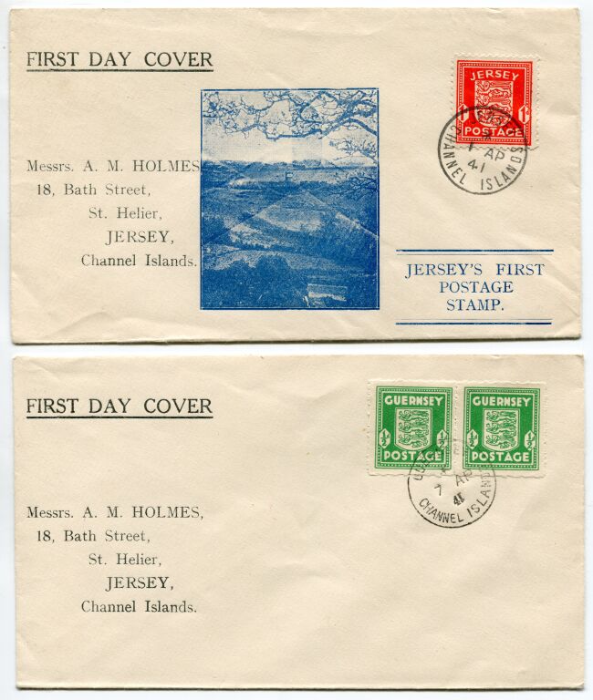 - JERSEY - numéro 1 - Un pence orange blason - sur enveloppe 1er jour illustrée, cachet à date " Jersey Channel Island 1 avril 1941 ".