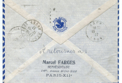 Affranchissement bloc de 4 Liberté aide aux réfugiés, cachet à date Paris XII Crozatier + CAD Horoplan (au dos) Le Bourget Port Aérien 12 - 11 +GRANDE GRIFFE COMMEMORATIVE de l'inauguration, frappe en violet 36 x 62 mm - au dos arrivée Lyon BRON AEROPORT, même jour. - sur enveloppe de la Cie AIR FRANCE.