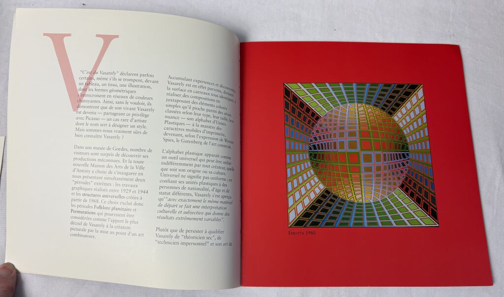 ANTONY (92) - VASARELY - Très luxueux catalogue, remarquable mise en valeur graphique des œuvres de l'artiste, inauguration de l'exposition à la Maison des Arts Parc Bourdeau, novembre 1992. 28 pages 24 x 23 cm - Large biographie très illustrée de l'artiste, œuvres présentées et commentées, reproductions pleine page.