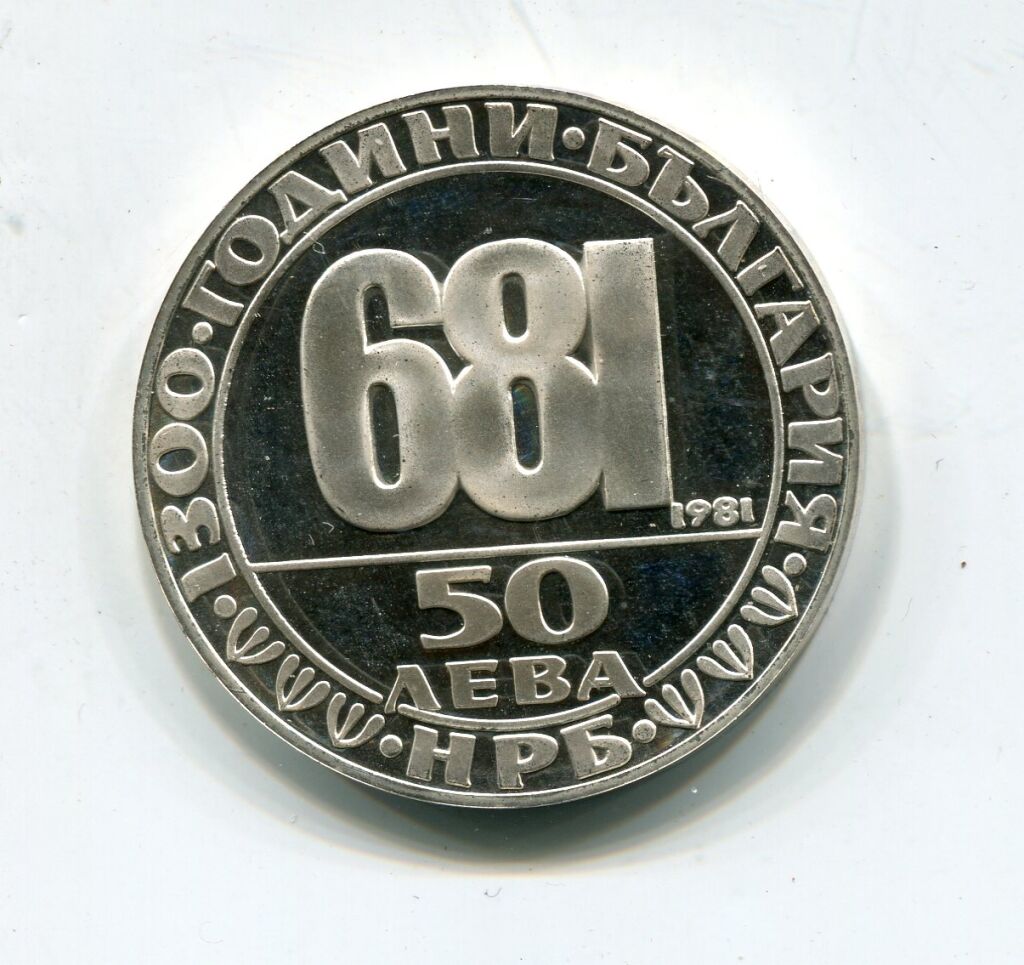 ARGENT - BULGARIE - 50 Leva 1300e ANNIVERSAIRE de la NAISSANCE de la NATION BULGARE 681 / 1981 - Khan DOULO, fondateur du 1er état bulgare à cheval - Fleur de coin belle épreuve. - Poids 20,50 grammes. - tirage 10 000 monnaies.