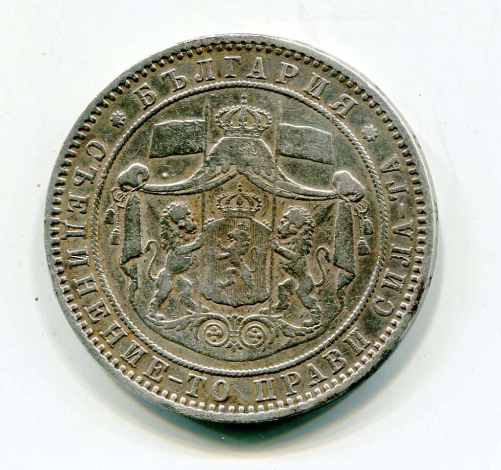 ARGENT - BULGARIE / UNION LATINE - ALEXANDRE 1er PRINCE sous la souveraineté turque - CINQ LEVA 1885 à la taille et au poids de la 5 francs armoiries princières.
