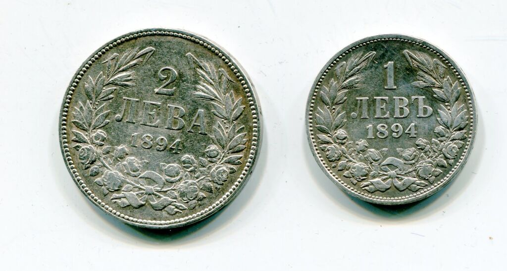 ARGENT - BULGARIE / UNION LATINE - FERDINAND 1er PRINCE sous la souveraineté turque - Deux monnaies à son effigie, profil à gauche : un Lev 1894 KB (atelier de Kormoczbanya) TTB/SUP + 2 Leva 1894 KB SUP.