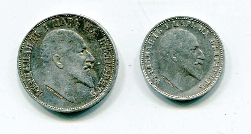 Deux monnaies à l'effigie du Roi, profil à droite, œuvre du sculpteur-médailleur autrichien Stephan SCHWARTES : 1 Lev 1910 + 2 Leva 1910 - Les deux SUP
