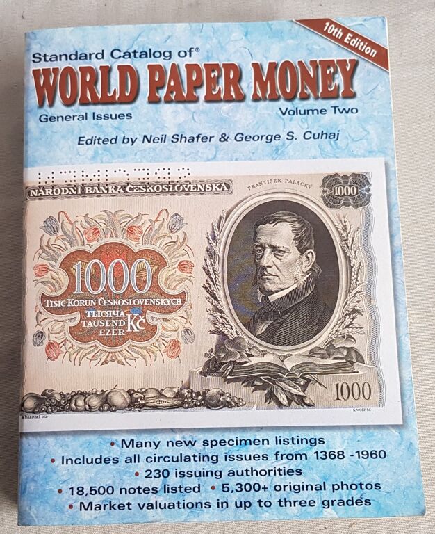 La cote de tous les billets du Monde de l' an 1368 jusque l' an 1960 , suivant 3 états de conservation avec photos recto et verso. - 1174 pages - 23 pays, 18 500 billets répertoriés, plus de 5 300 photos...