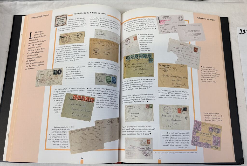 Reader's Digest ed, par Marie Gilles, Préface de Pierre Julien rédacteur en chef du Monde des Philatélistes - grand format 31 x 23,5 cm, 143 pages en couleurs sous solide reliure cartonnée - Parfait ouvrage pédagogique pour le collectionneur, particulièrement le débutant pour tout savoir sur l'histoire postale, les oblitérations, la manière de collectionner, la terminologie etc.. Magnifiquement présenté et illustré pour répondre a toutes ses questions.
