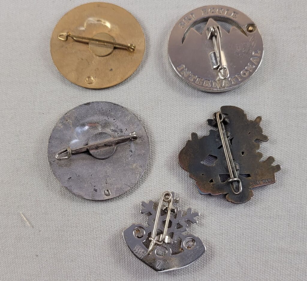 CINQ INSIGNES SKI années 60 / 70, broches à épinglette :