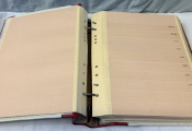 CLASSEUR de STOCK PROFESSIONNEL - Très forte reliure mobile, forte couverture recouverte péga, dos bois fabrication T.I.M. avec système ouverture à plat, 2 anneaux décalés (2 x 2), débrayable. Contient 37 (trente sept) feuilles de stock en solide carton bulle, dix bandes, pour classement pro pouvant supporter des épaisseurs.