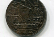 COMPAGNIE des BERMUDES 17e siècle / Territoire Britannique - Jeton / Monnaie de six pences des ILES SOMMER (* ) -Cochon sauvage debout de profil légende circulaire "Sommer Island - Revers : grand voilier de commerce - Cuivre argenté - 3,24 grammes."-TTB