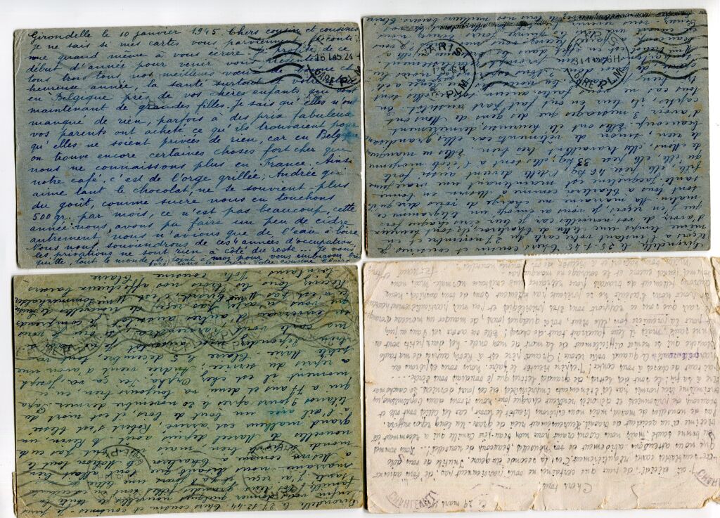 - COLLECTION de QUATRE BEAUX DOCUMENTS - 4 cartes expédiées au même destinataire (1 entier 1 F 50 Iris + 3 cartes correspondances inter zones) au départ des Ardennes pour KIVU au Congo Belge - intéressantes correspondances du temps (1945). Affranchissements par divers timbres mobiles (photos), marques de Censure françaises et anglaises.