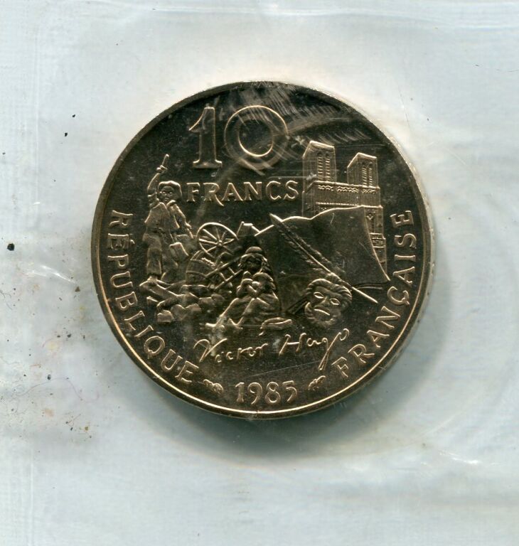 FRANCE - DIX FRANC VICTOR HUGO 1985 - ESSAI avec le mot Essai gravé dans le métal - FLEUR de COIN sous sachet d'émission Monnaie de Paris.