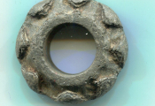 FRANCE - MONNAIE PREMIERE ou OBJET VOTIF du MONDE CELTIQUE, 2e à 1er siècle avant Jésus Christ - TRES GRANDE ROUELLE BITRONCONIQUE, à 8 gros globules triangulaires en circonférence - plomb, diamètre extérieur 31 mm ; épaisseur 9,5 mm - diamètre de l'axe 9,5 mm. - poids de 35,60 grammes - SUPERBE