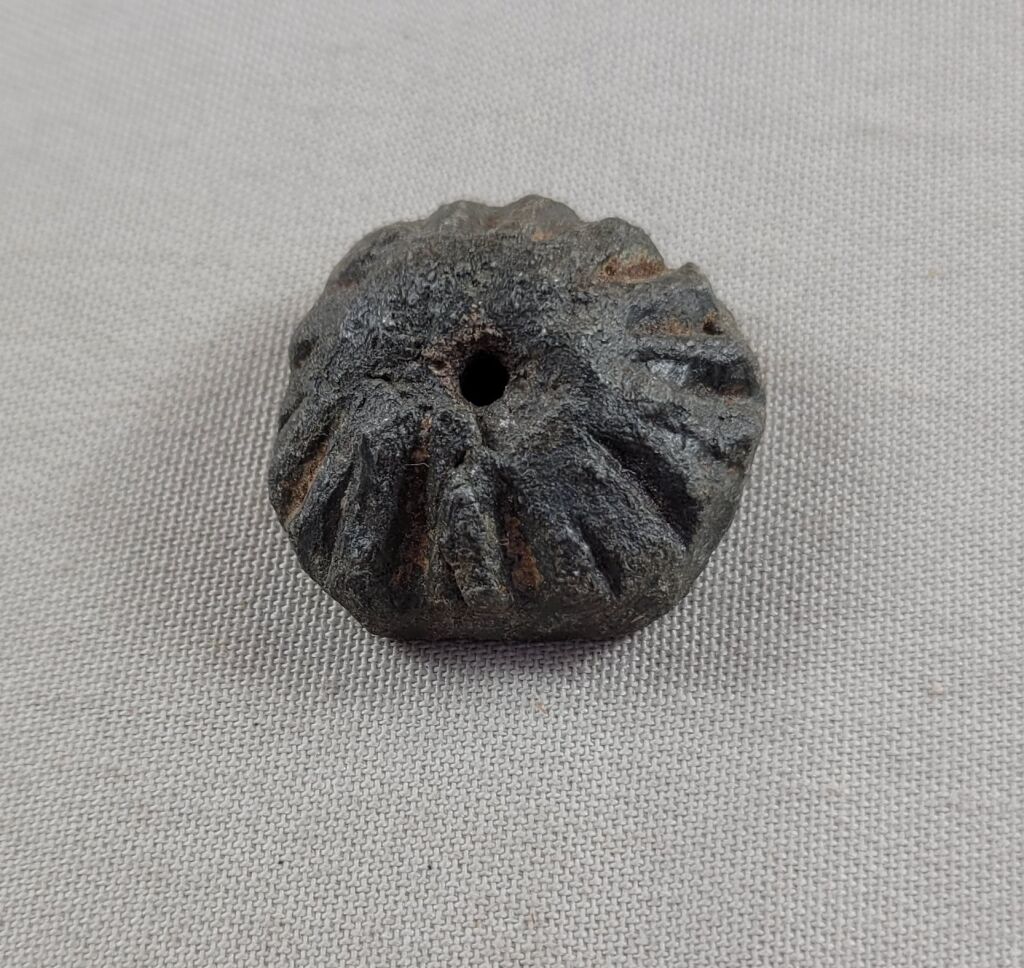 FRANCE - MONNAIE PREMIERE ou OBJET VOTIF du MONDE CELTIQUE, 2e à 1er siècle avant Jésus Christ - TRES GROSSE ROUELLE TRONCONIQUE, COURONNE à PLAN CONVEXE et à pans coupés avec MOTIFS de CANELURES verticales ALTERNEES sur tout le pourtour - . plomb, diamètre extérieur 30 /28 mm ; épaisseur 12,5 mm - diamètre de l'axe 2,5 mm. -