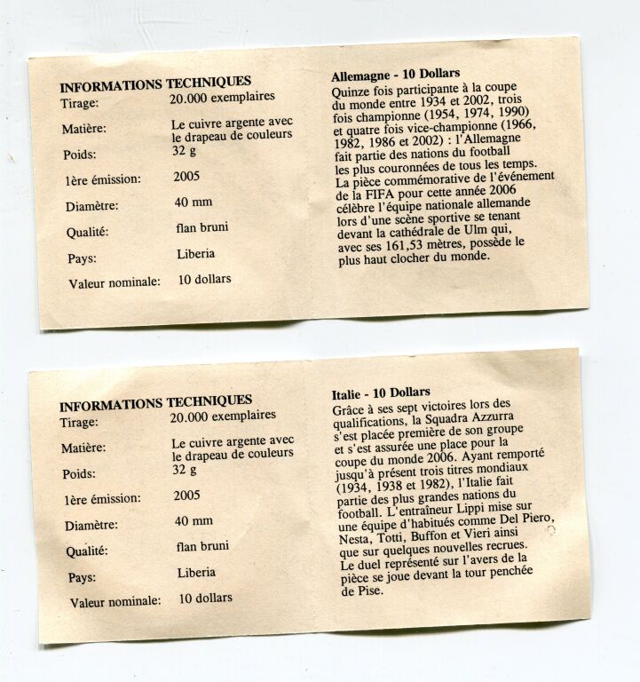 LIBERIA - DEUX MONNAIES "COUPE du MONDE FIFA de FOOTBALL 2006 :
