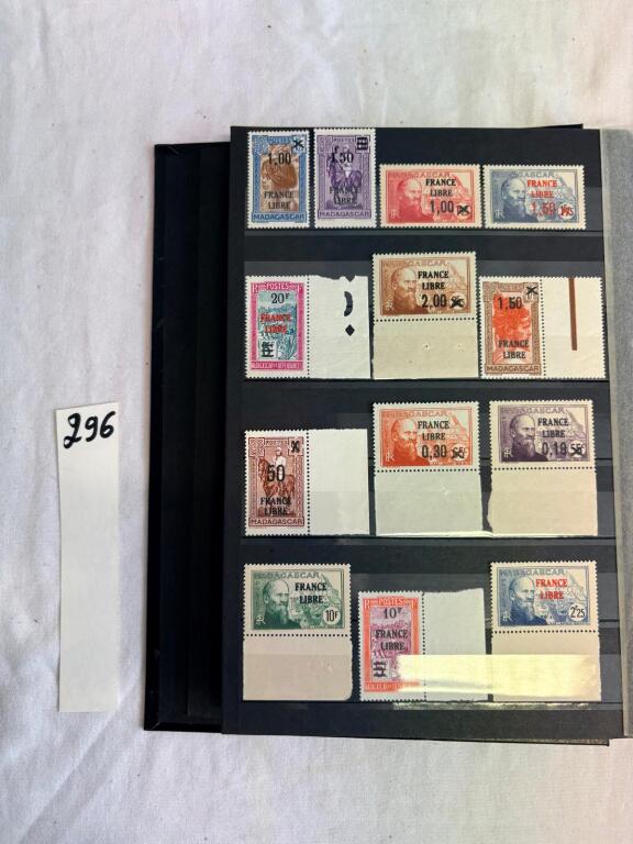 MADAGASCAR 1942, colonie française - très belle et rare collection des 45 timbres différents avec la surcharge " FRANCE LIBRE " :