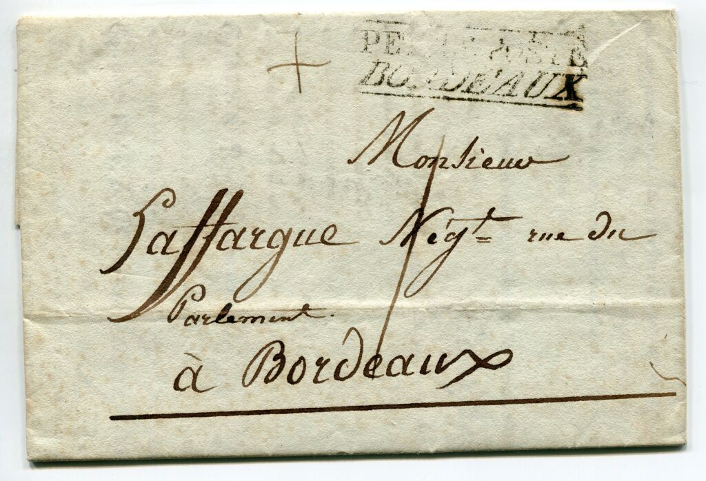 (21 mai 1804), marque en noir entre 2 lignes, 15 x 44 mm : " PETITE POSTE / BORDEAUX "