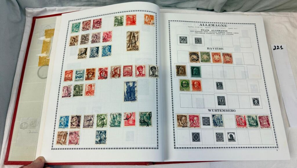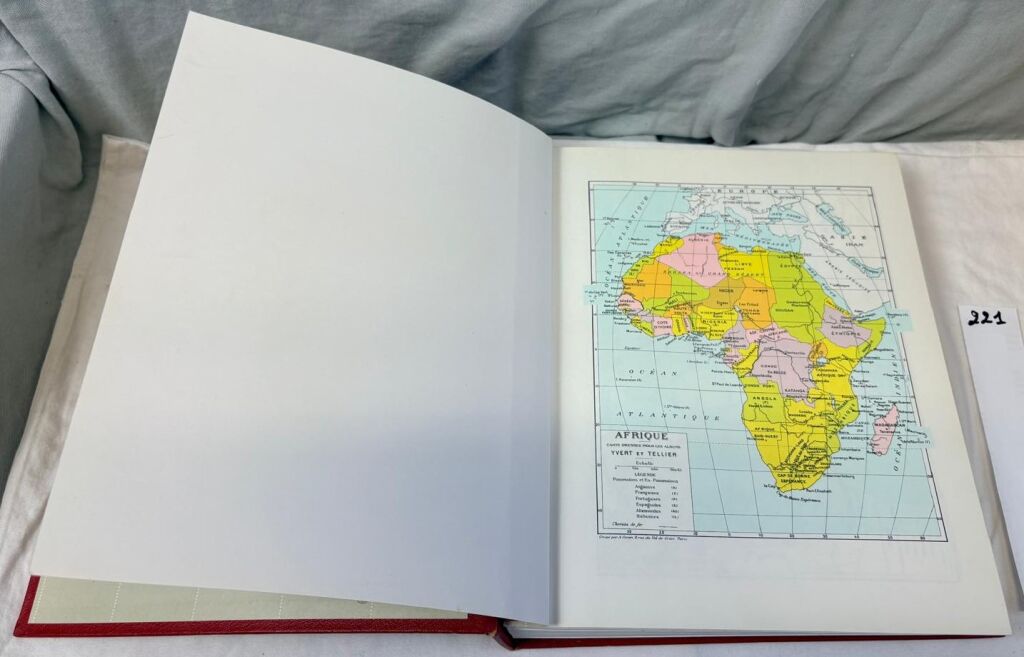 Traditionnel album pour débutant de la collection de timbres - 415 pages avec cases pour placer les timbres, chaque pays actuels ou disparus représentés par continent. En tête d'ouvrage grande cartographie en couleurs - 31,5 x 26,5 x 5,5 cm.