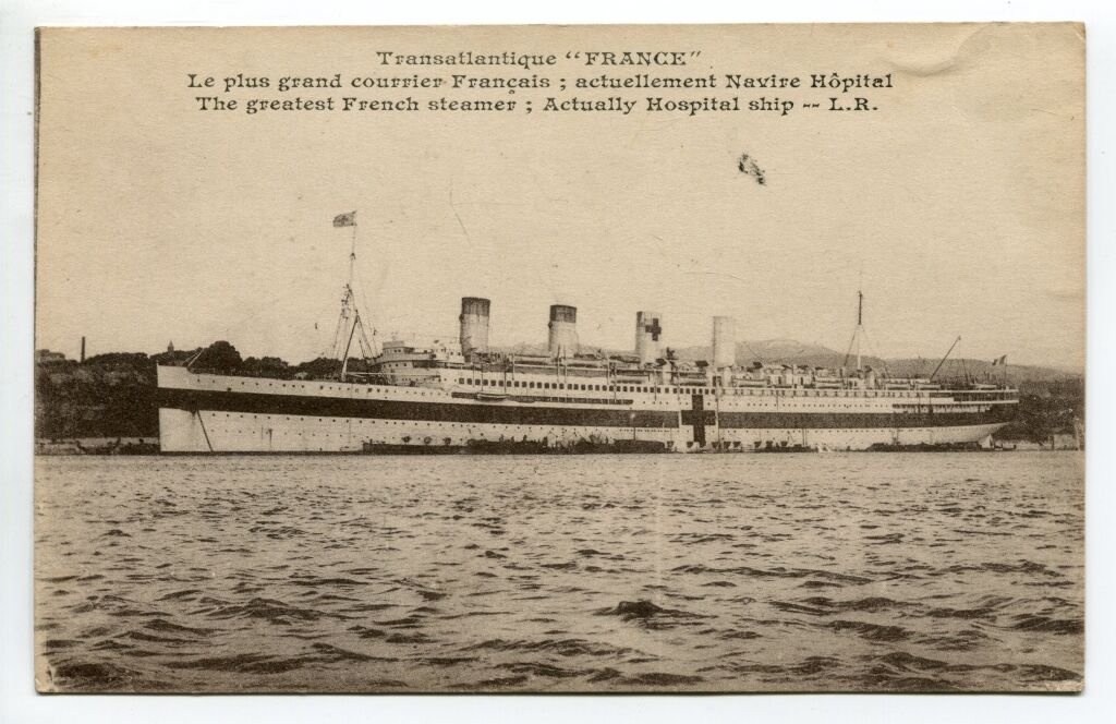 ( * ) - FRANCE - COMPAGNIE GENERALE TRANSATLANTIQUE - Le plus grand paquebot français, 220 mètres, le seul à 4 cheminées (hauteur 34 mètres, diamètre 5 m 30), 19 chaudières et 120 foyers dévorant 5 500 tonnes de charbon pour la traversée en 5 jours 16 heures, personnel 600 personnes, 2 000 passagers. Assura la ligne Le Havre - New York du 20 avril 1912 jusque 1932, excepté lors de la 1ère Guerre Mondiale où il fut affecté au transport de troupes (françaises pour le front d'orient - américaines pour la France) et NAVIRE HOPITAL en méditerranée. Le plus luxueux de son époque - Construction Penhoët / St Nazaire. - Commandant Léon Eugène PONCELET.