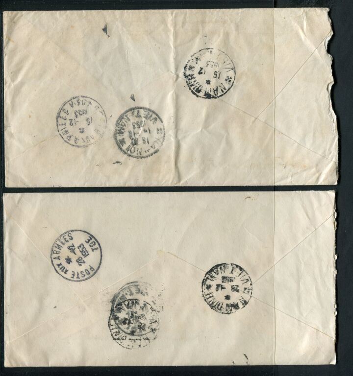 au dos les deux cachets arrivée et POSTE AUX ARMEES TOE 15 et 28 décembre 1953.