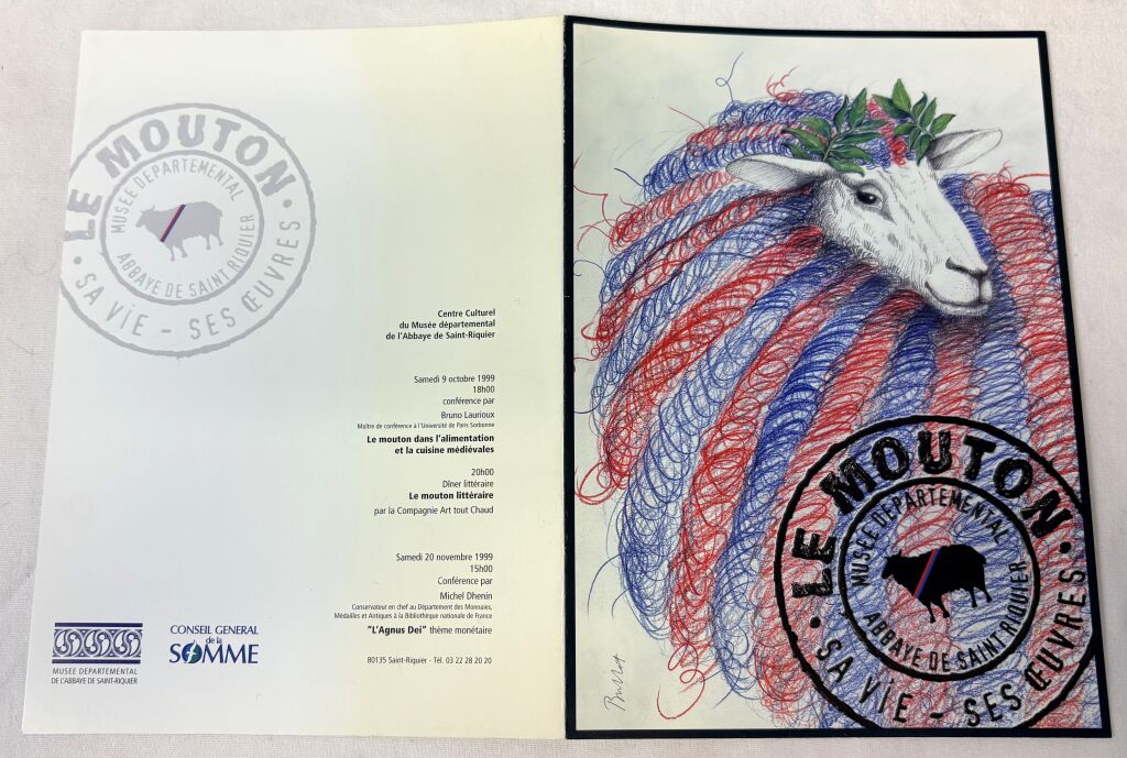 SAINT RIQUIER 80) - INAUGURATION de L'EXPOSITION "LE MOUTON, SA VIE, SES OEUVRES " - Centre culturel du musée départemental de l'Abbaye de St Riquier Conseil Général de la Somme - Carton ouvrant d'invitation pour le 19 juin 1999 à l'exposition et à la CONFERENCE "LE SACRIFICE D'ABRAHAM", conférence donnée par Lucien Marciano Président de l'exposition biblique, membre de la communauté juive d'Amiens, Adrien Castel prêtre catholique et Moussa Abdellatif membre musulman, Orjan Backryd Pasteur...