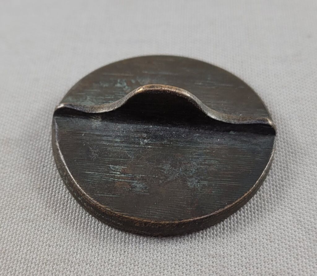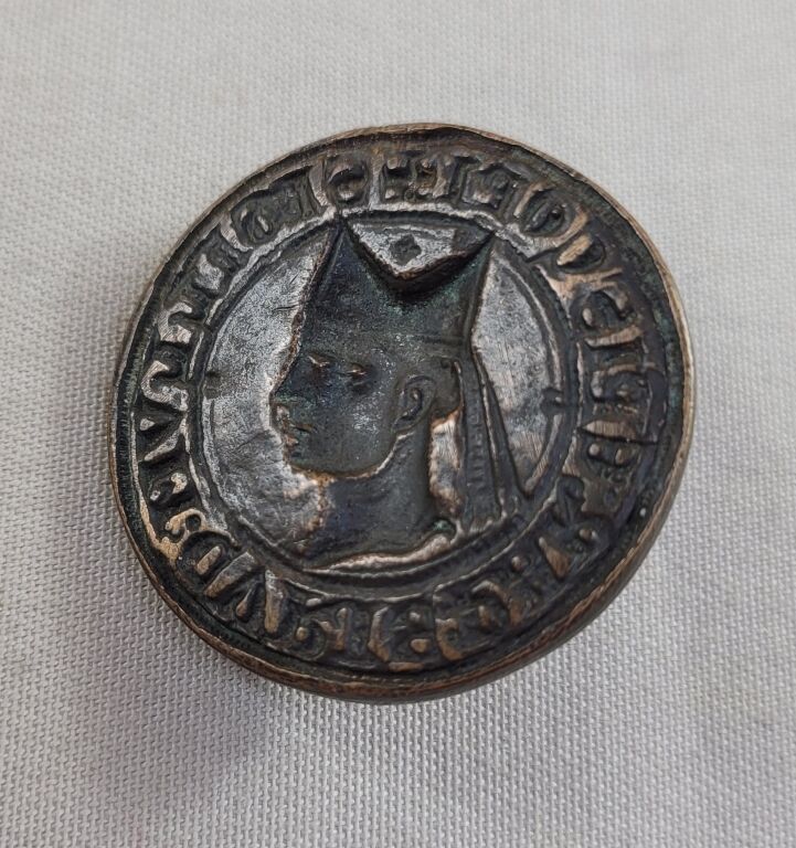En bronze, ronde 39 mm à légende circulaire en latin gravée en creux en négatif. En centre tête d' évêque avec mitre, profil à gauche.- au dos arête pour préhension. - 37,31 gr