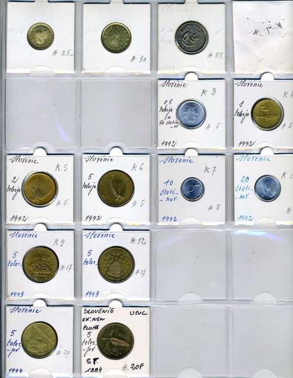 SLOVENIE - Collection de 13 pièces émises entre 1991 et 1994 - Toutes les monnaies sous rond et feuille HB - Toutes SUP à FDC