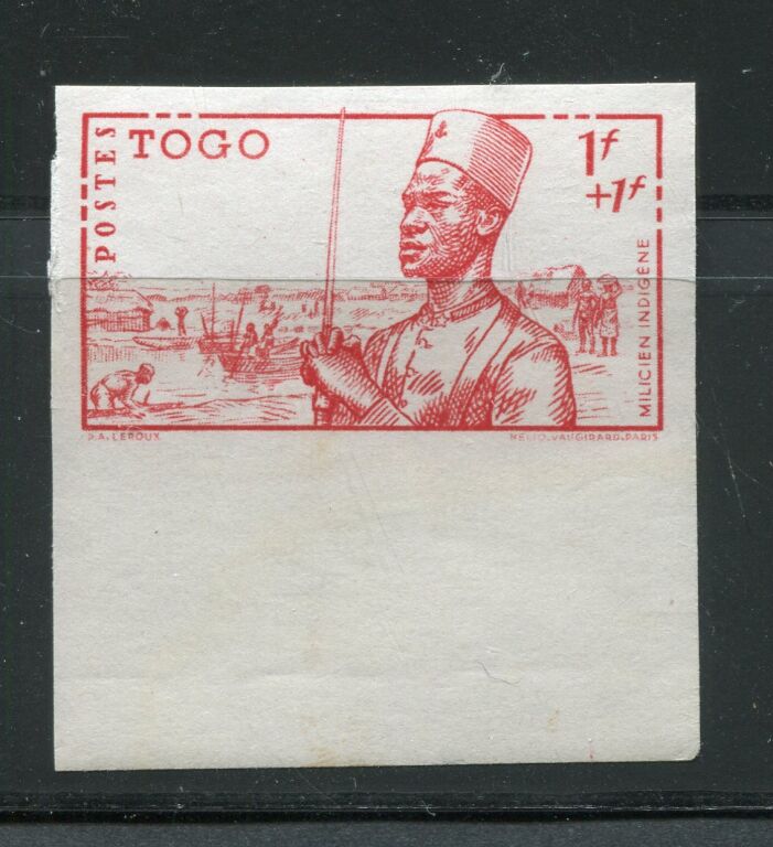 TOGO, colonie française 1941 - 1 f + 1 f rouge " Défense de l' Empire " TIRAILLEUR SENEGALAIS - TIMBRE n° 208 a, RARE NON - DENTELE, neuf **