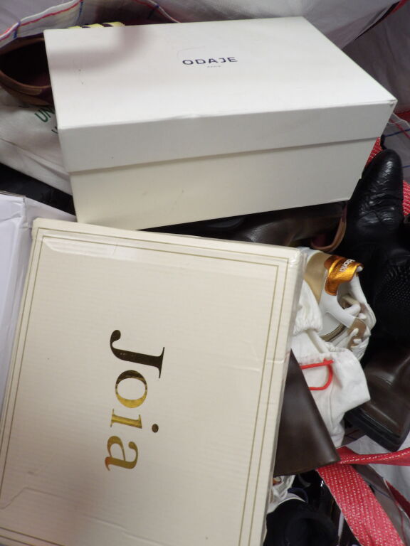 1/2 Palette de 80 paires de chaussures d'occasion, certaines neuves : Homme, Femme et enfant (divers gammes et marques ....)