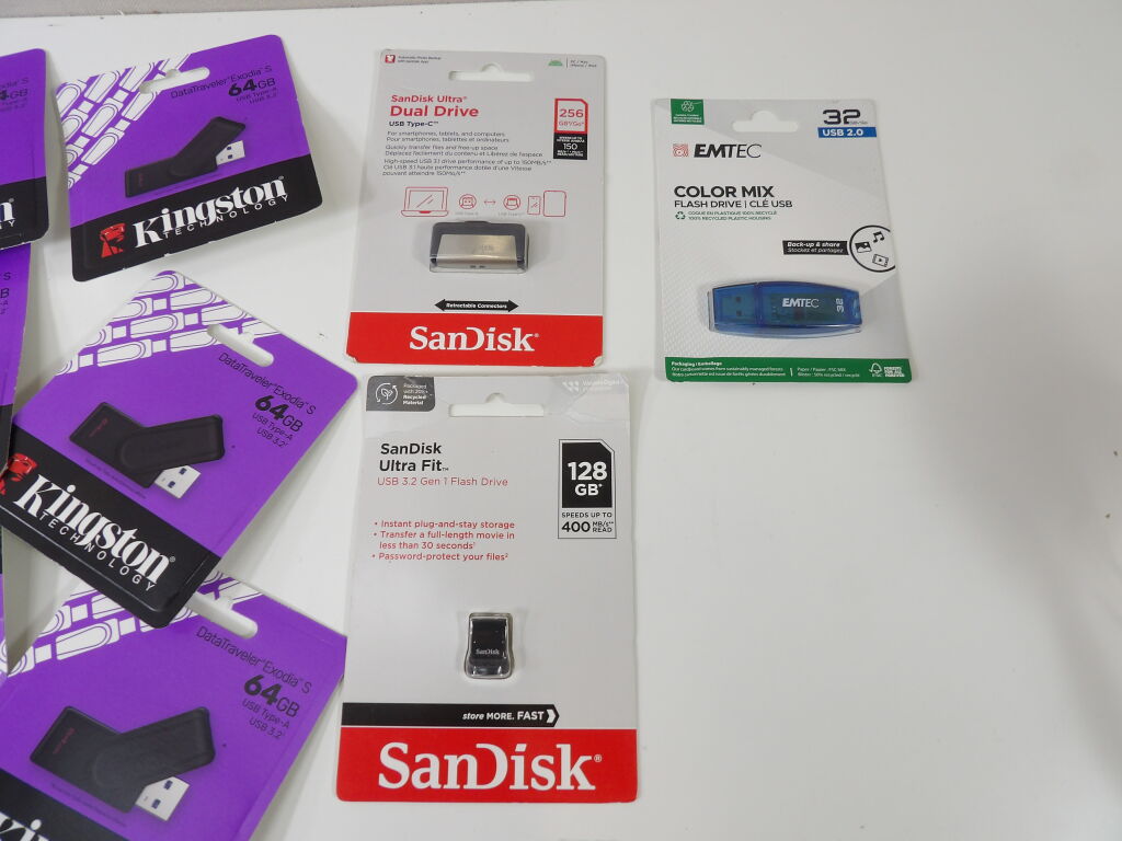 12 clés USB dont 9 x kingsyon 64 GB et une SanDisk 256 GB ...