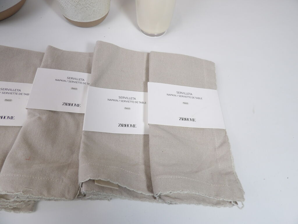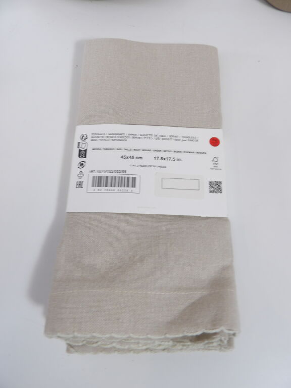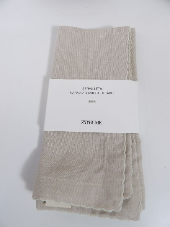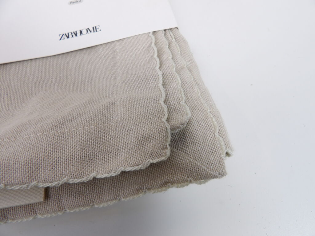 - 8 x packs de 2 Serviettes de tables en coton festonés naturel (45 x 45 cm)