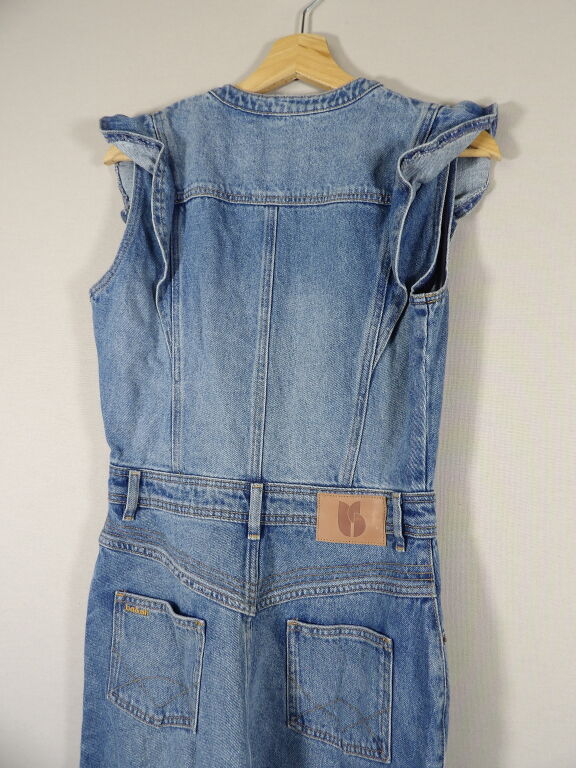 -Robe midi en denim VAYEA à volants sans manches avec fermeture boutonnée,