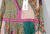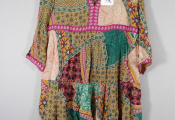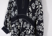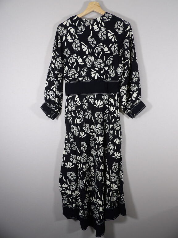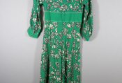 -x2 Robes mi longue à fleurs AUDE esprit bandana, manches 3/4 avec taille soulignée, en noir / blanc; et en vert/écru.