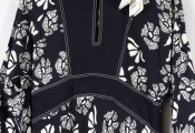 -Robe mi longue à fleurs AUDE esprit bandana, manches 3/4 avec taille soulignée, en noir / blanc.