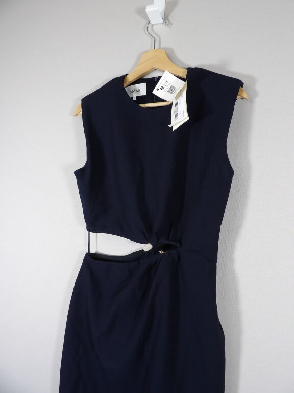 -Robe midi IRIS avec Découpes taille, sans manches, et épaulettes - jupe droite et fente dos, en bleu nuit.
