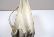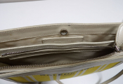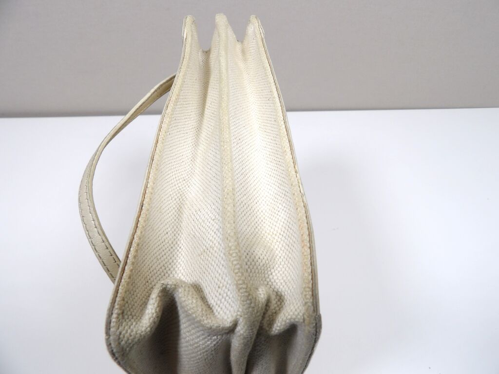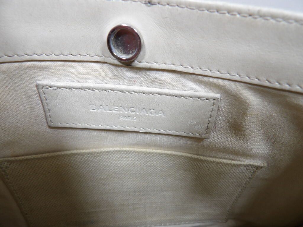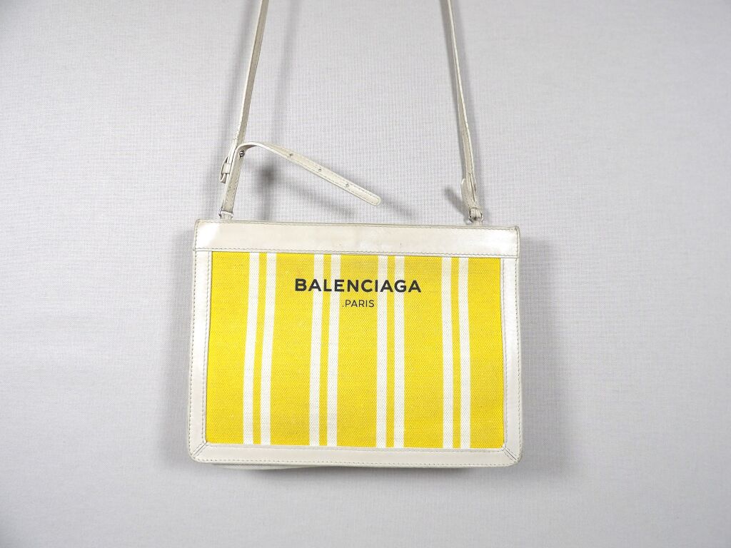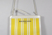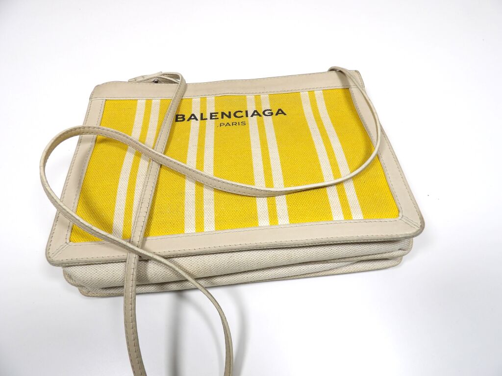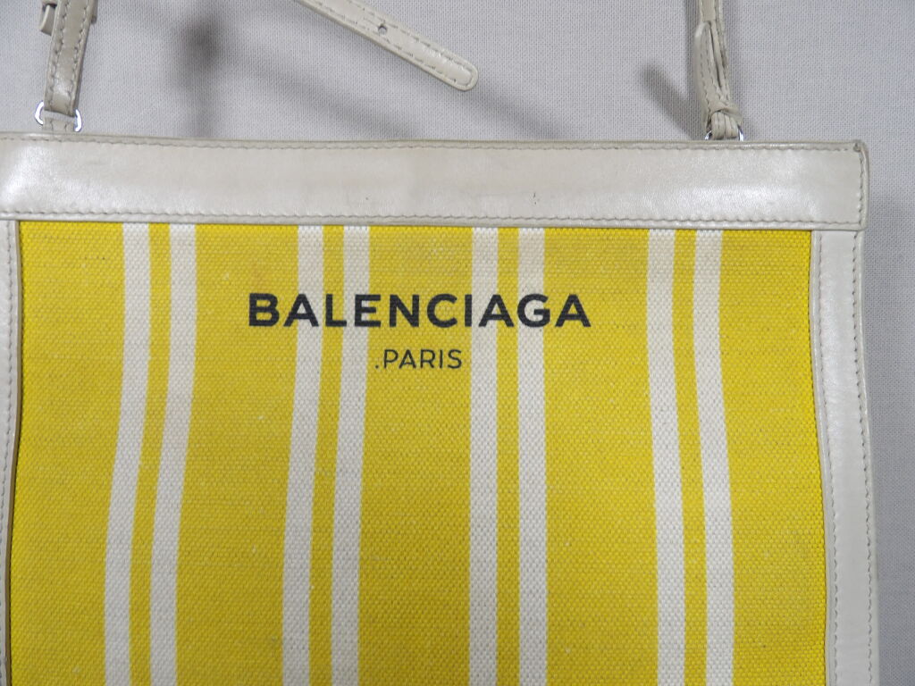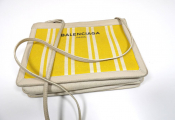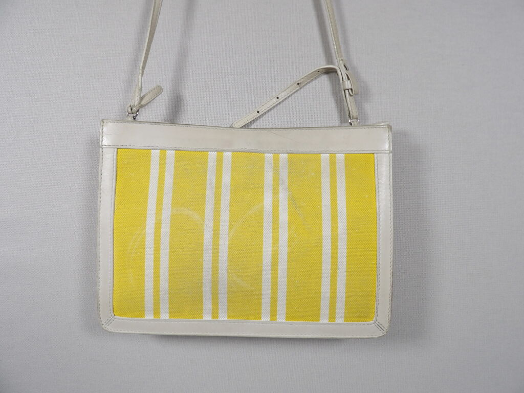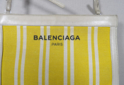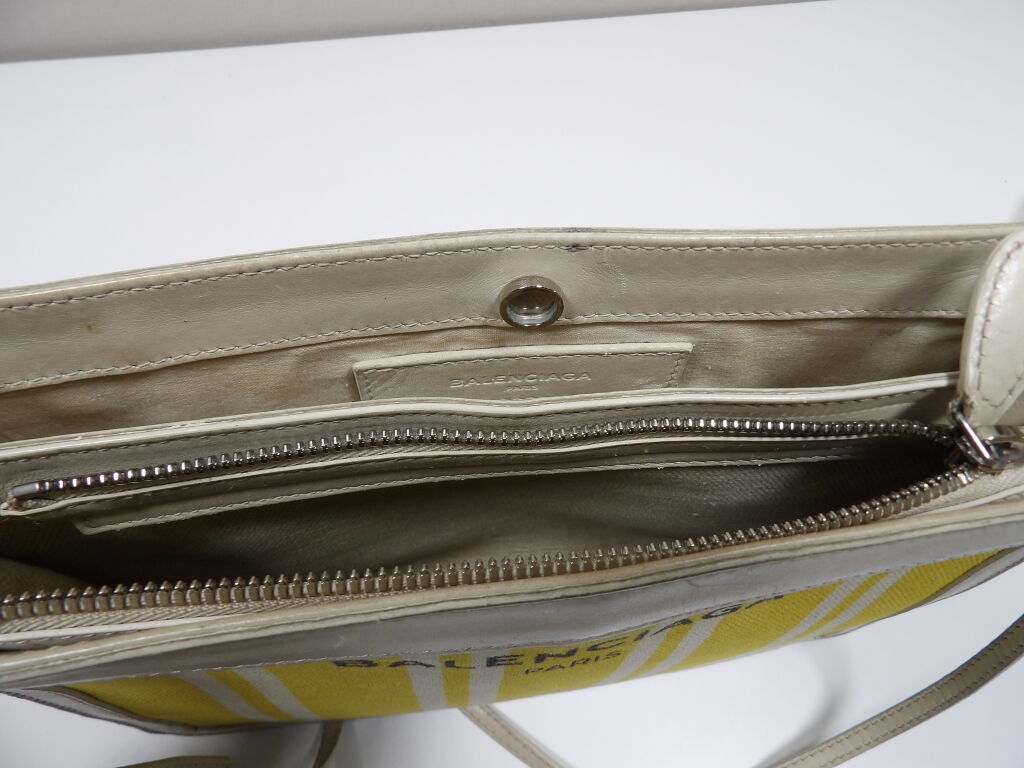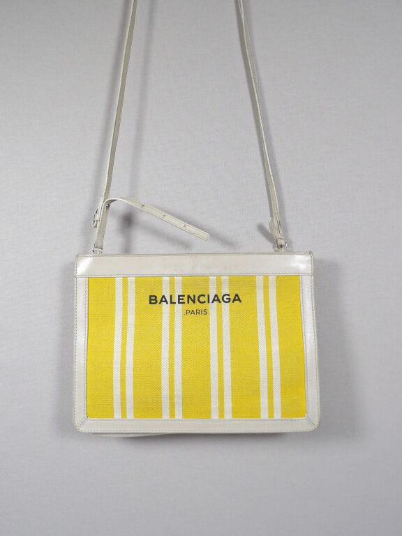 BALENCIAGA - Sac en toile rayée jaune et cuir beige - Occasion - état d'usage