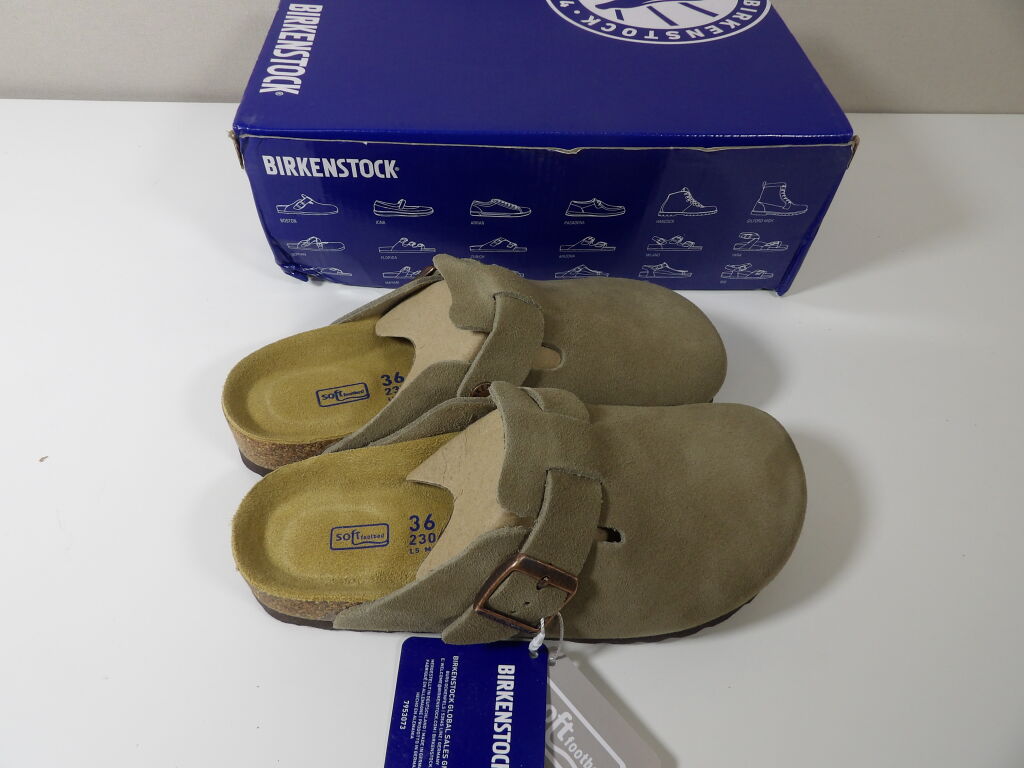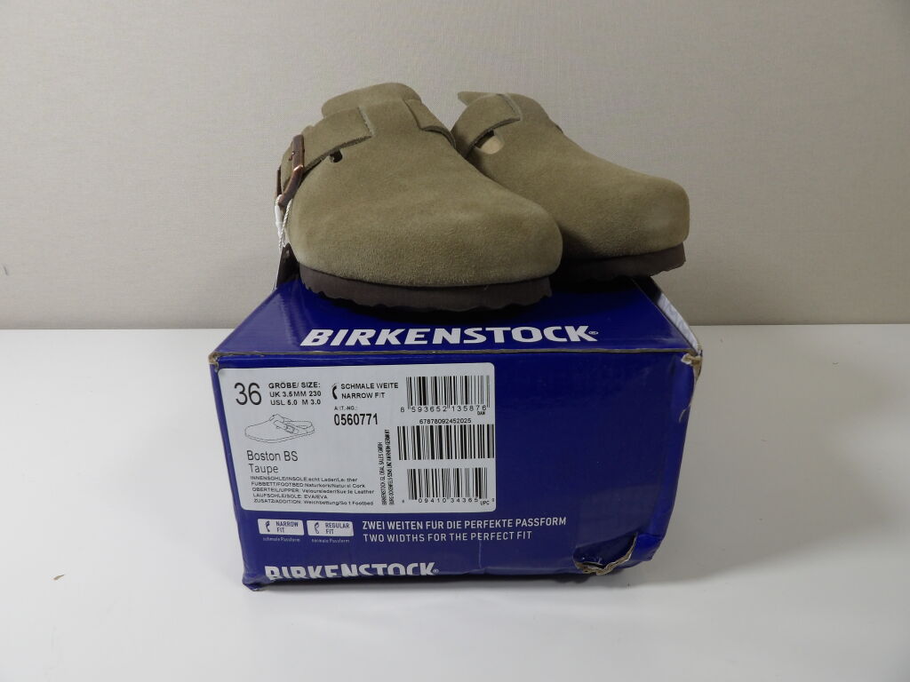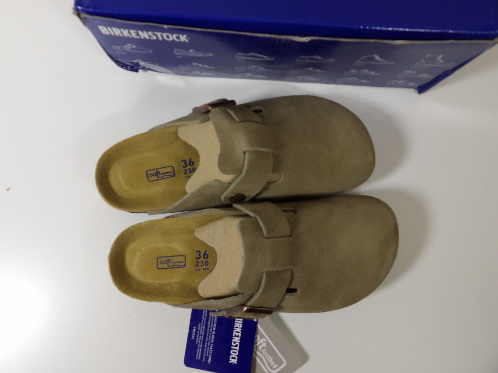 BIRKENSTOCK - paire de sabots modèle BOSTON BS - neufs dans leur boite d'origine (boite abimée). Couleur taupe - pointure 36 - largeur de pied étroite (narrow fit)