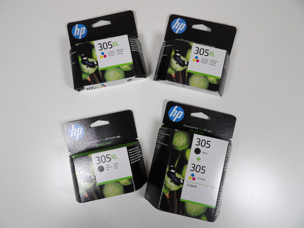 CARTOUCHE ENCRE : Lot de 5 cartouches d'encre HP - 305 : 1 tri couleurs / 1 couleur noire