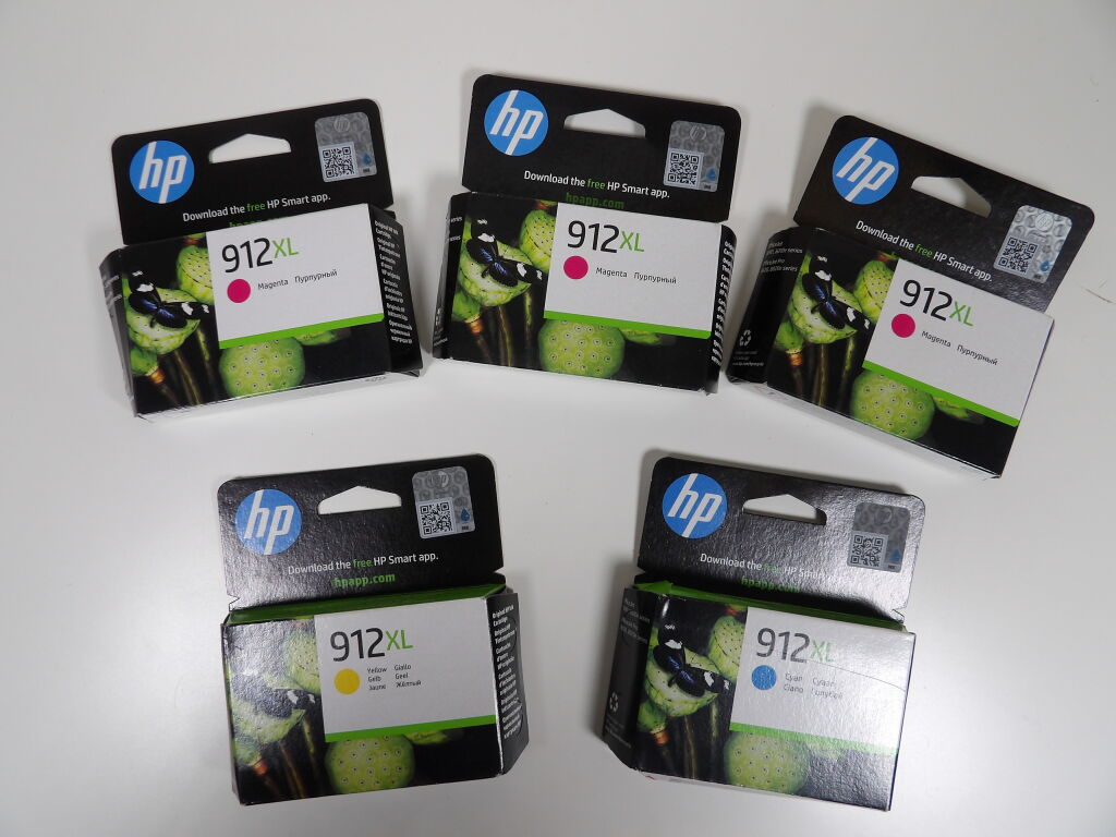 CARTOUCHE ENCRE : Lot de 5 cartouches d'encre HP - 912 XL : 3 Magenta / 1 jaune / 1 ciano NEUF