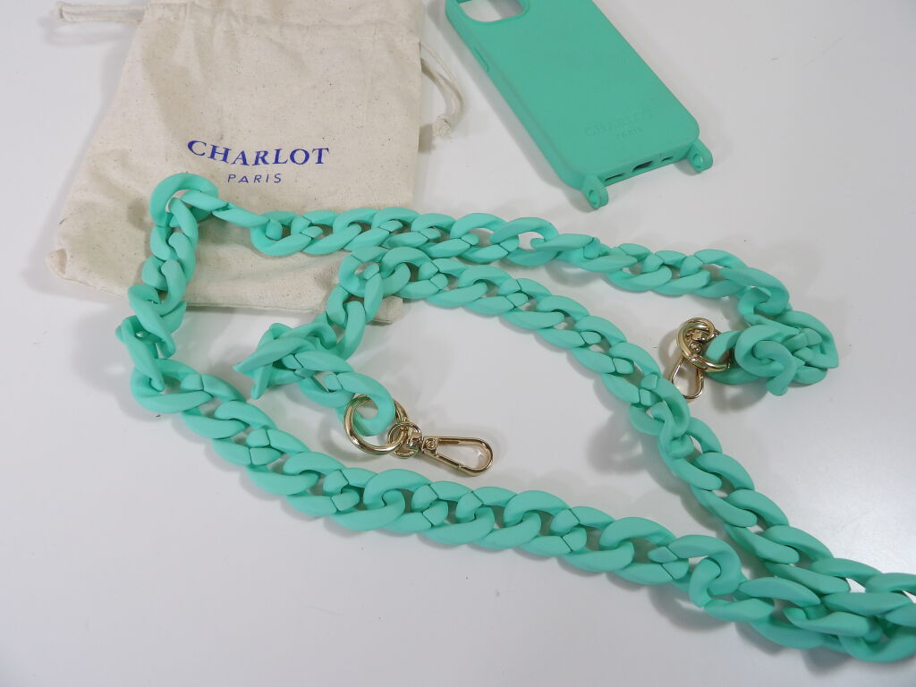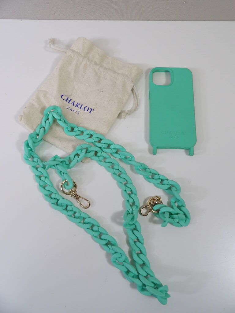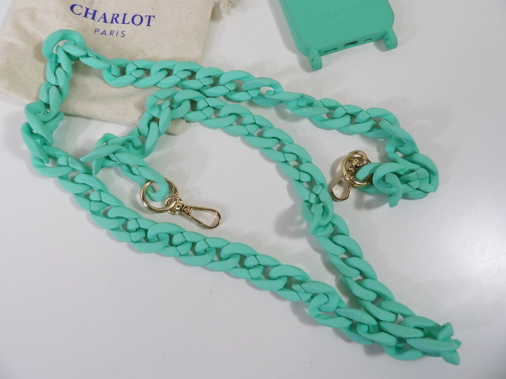 CHARLOT Paris - Coque de téléphone verte avec sa longue chaine assortie - d'occasion bon état.
